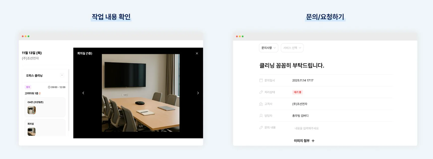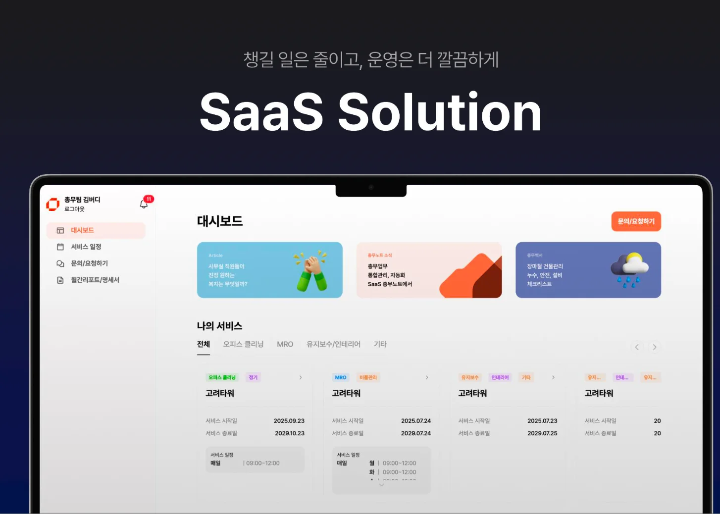 뿐만 아니라 공간에 대한 케어와 직원 복지에 대한 영역까지 서비스를 제공합니다.