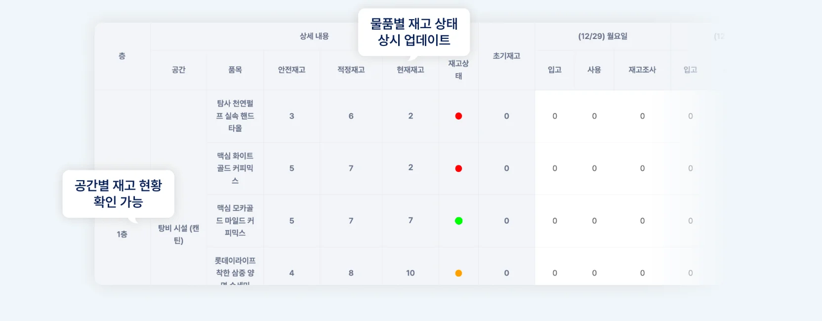 뿐만아니라 정기 리포트를 통해서 이번 달 사용한 총 금액과 우리 사무실에 대한 인사이트를 한눈에 볼 수 있도록 제공해드리고 있고, 소모품의 재고도 실시간으로 확인할 수 있습니다.